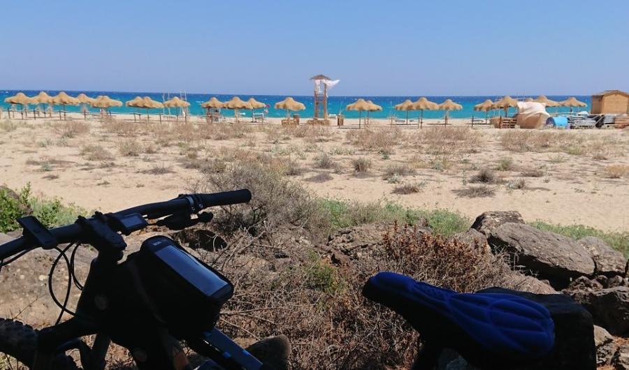 Partenza: trasferimento in auto a Sos Alinos località balneare del comune di Orosei da cui parte il tour, le cui spiagge sono circondate da fitte e rinfrescanti pinete, adiacenti alla meravigliosa Biderrosa. Biderrosa è un’oasi naturalistica che si estende per circa 532 ettari. Una bellissima pineta ed una ricca vegetazione spontanea costituiscono la foresta costiera di Biderrosa, che fa da perfetta cornice a cinque splendide calette in una delle più belle e pregiate aree costiere della Sardegna, meta ambita del turismo balneare estivo. Le calette e l’ingresso all’oasi (1 euro per le bici), sono gestite da una cooperativa locale; in una di queste è presente anche un punto di ristoro con bibite fresche e cibi caldi. Il tragitto all’interno dell’oasi parte dall’ingresso del cantiere forestale ed interessa per gran parte le strade utilizzate, durante tutto l’anno, dai mezzi degli uomini addetti alla manutenzione ed alla sicurezza , sono strade sterrate larghe e ben segnalate.